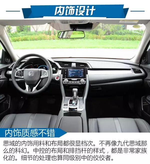 思域的內(nèi)飾沒有低級到之堆砌一些看起來很高檔的廉價飾板和飾條。即使摸起來還是該級別該有的較硬手感,但是可以看出是經(jīng)過精心設(shè)計的。同時,本田大法中最著名的就是收納空間的水平。十代思域依舊領(lǐng)先同級對手一個檔次。你可以說它的內(nèi)飾是看起來不錯,用起來非常好的一位。