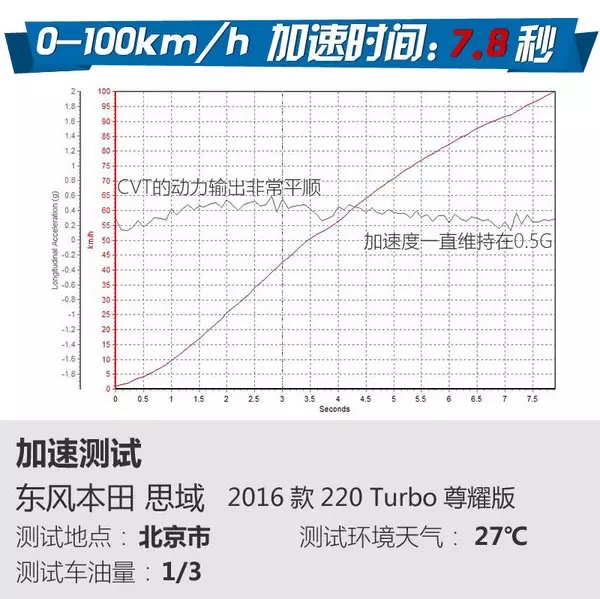 受限于測試當天為小雨天氣,思域的成績可能多少會與干燥的地面有些差距。但是神車還是交出了不錯的答卷。尤其是剎車成績,可以說是非常的出色直逼一些性能車。加速也是同級最佳的水平。難能可貴的是兩者的表現(xiàn)都非常平順,不管是加速度,還是減速度。